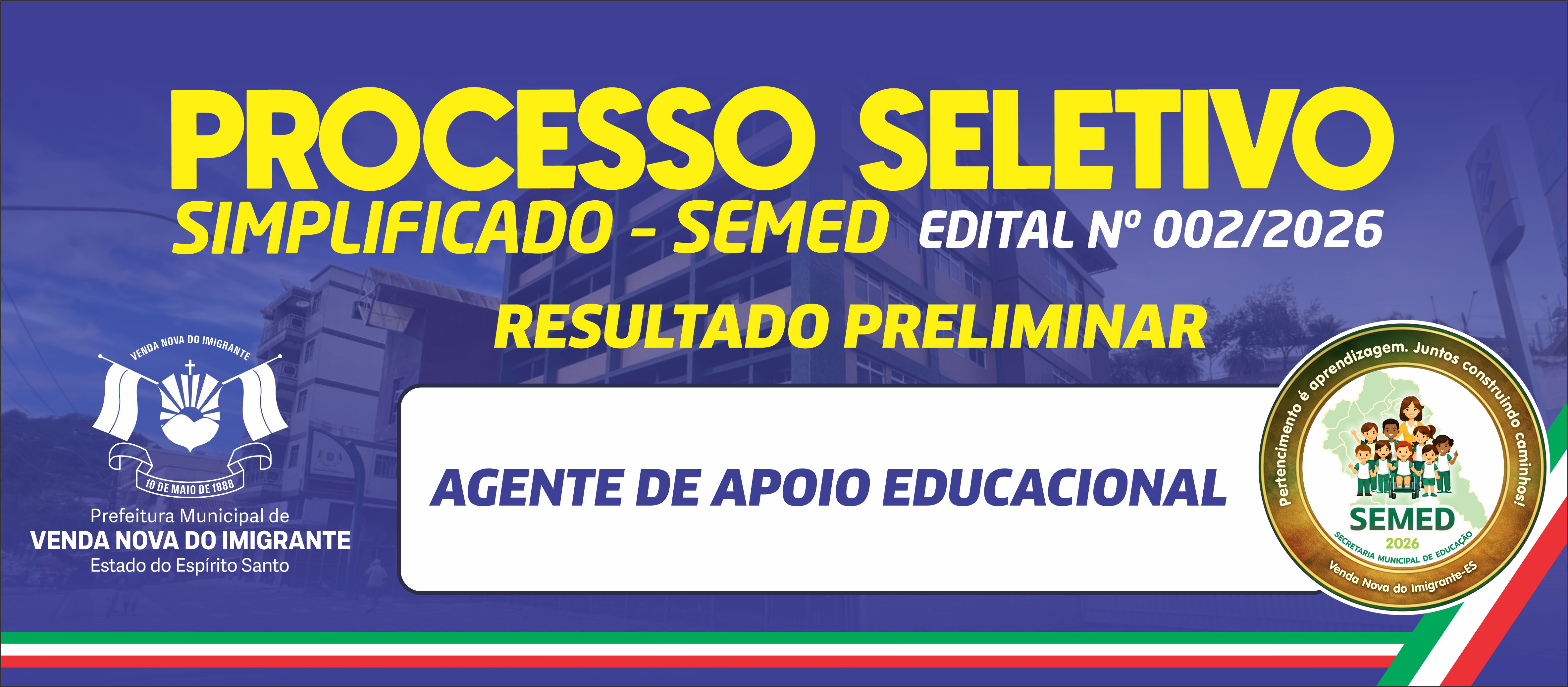 RESULTADO PRELIMINAR - EDITAL Nº 002/2026 - PROCESSO SELETIVO SIMPLIFICADO – SEMED - 17/04/2026