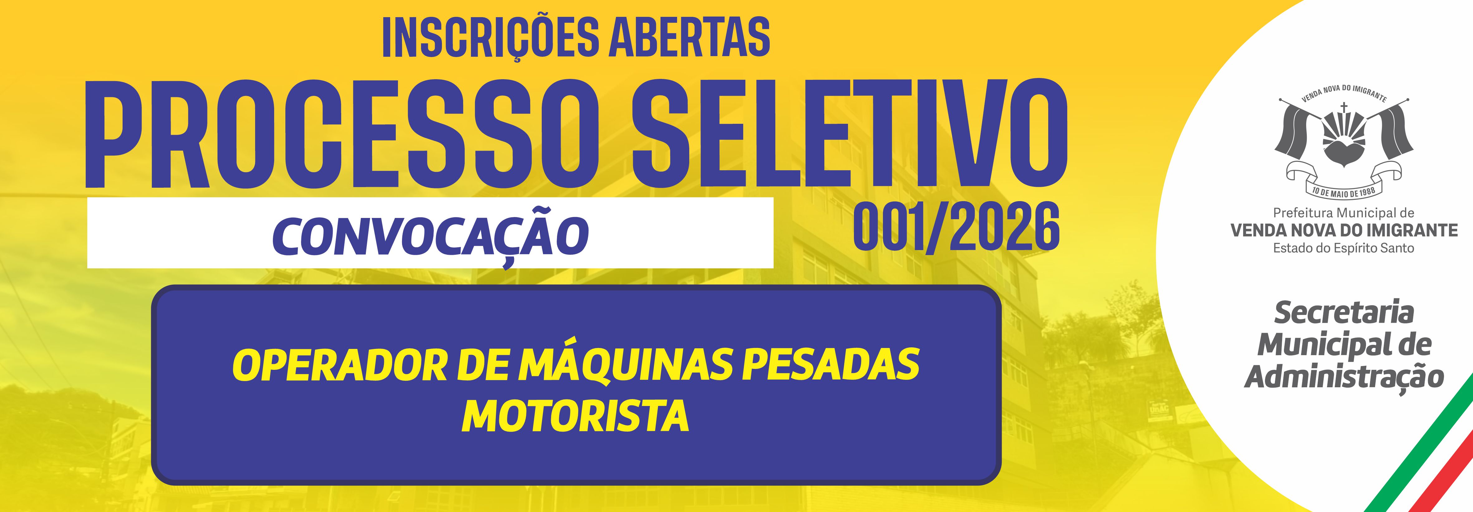 CONVOCAÇÃO Nº 001/2026 - MOTORISTA - OPERADOR DE MÁQUINAS PESADAS - 28/04/2026