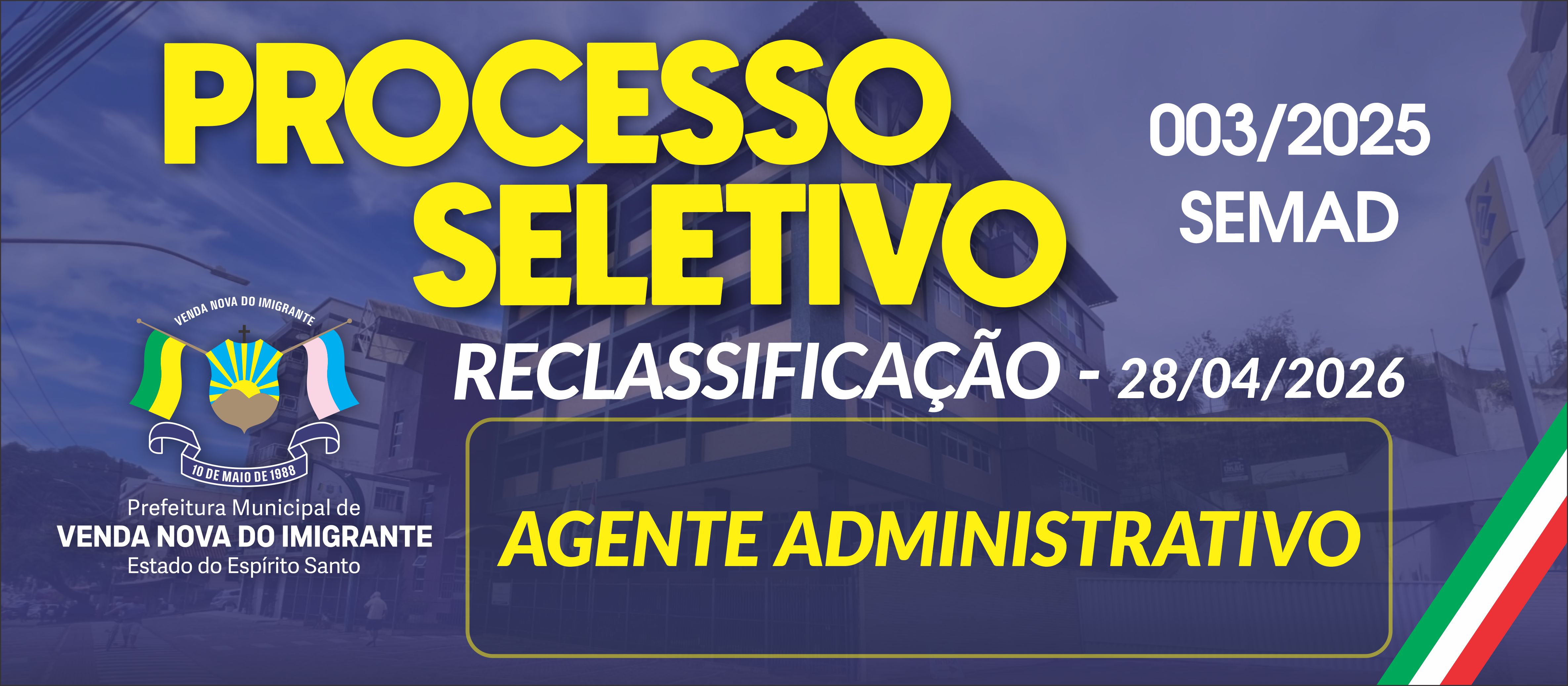 RECLASSIFICAÇÃO AGENTE ADMINISTRATIVO - PROCESSO SELETIVO 003/2025 - 28/04/2026