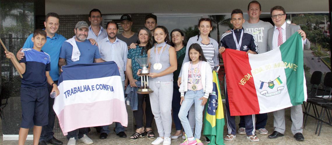 Atletas foram recebidos na Prefeitura - Ascom/PMVNI