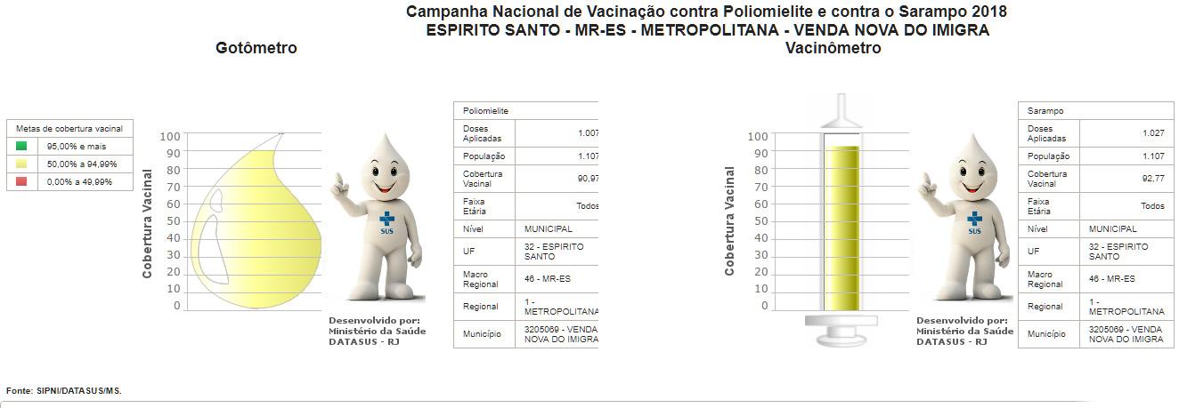 A campanha de vacinação contra sarampo e pólio em Venda Nova do Imigrante está praticamente terminada. A cobertura vacinal, se considerados todos os públicos-alvo, chegou a mais de 90%. Porém, o cenário não é de comemoração. A procura pelas vacinas foi baixa, mesmo com ampla divulgação da campanha e grande mobilização nas unidades de saúde.