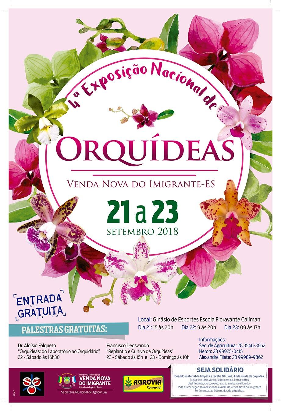 Está chegando o momento de se encantar com a beleza, a forma e o perfume das orquídeas da região das montanhas capixabas. A Exposição Nacional de Orquídeas acontece de 21 a 23 de setembro em Venda Nova do Imigrante e promete deslumbrar mais uma vez o público. A entrada é gratuita, mas tem presente para quem for solidário.