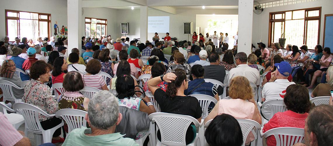 A palestrante foi Míriam Falqueto Duarte, dentista da unidade de saúde do Bairro Minete. “Essa palestra a gente faz todos os anos aqui, para detecção e prevenção do câncer. Também para evitar que o idoso adoeça ou tenha algum problema mais grave”, comenta a dentista que participa da ação há dez anos.