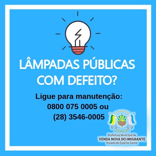 Por isso, quando há a ocorrência de lâmpadas queimadas e acendimentos fora de hora, por exemplo, você pode acionar a manutenção. Os telefones são 0800 075 0005 ou (28) 3546-0005. Esse é o caminho mais rápido para a solução desse tipo de demanda.