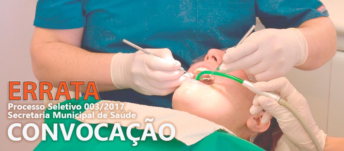 O edital de errata é do Processo Seletivo Público 003/2017 da Secretaria Municipal de Saúde