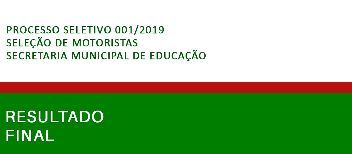 A Secretaria Municipal de Educação (Semed) publicou nesta segunda-feira (08) o resultado final do Processo Seletivo Simplificado para contratação temporária de motorista. A seleção é regida pelo edital 001/2019.