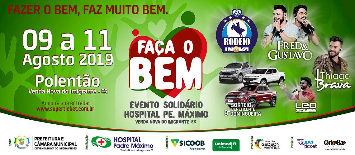 A tradicional festa de rodeio de Venda Nova do Imigrante está se aproximando e, desta vez, a diversão e a alegria vão estar acompanhadas da solidariedade. A festa, que recebeu o nome “Faça o Bem”, será realizada em benefício do Hospital Padre Máximo e vai trazer atrações para quem gosta de música e, claro, da emoção da arena.