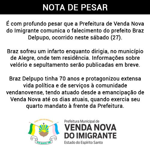 Velório vai acontecer na Prefeitura. Sepultamento será realizado em Alegre