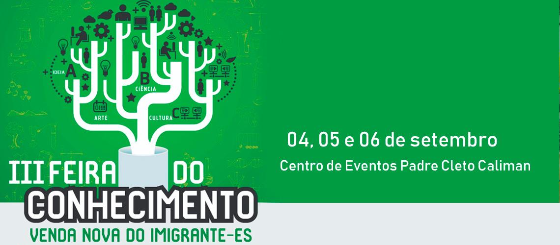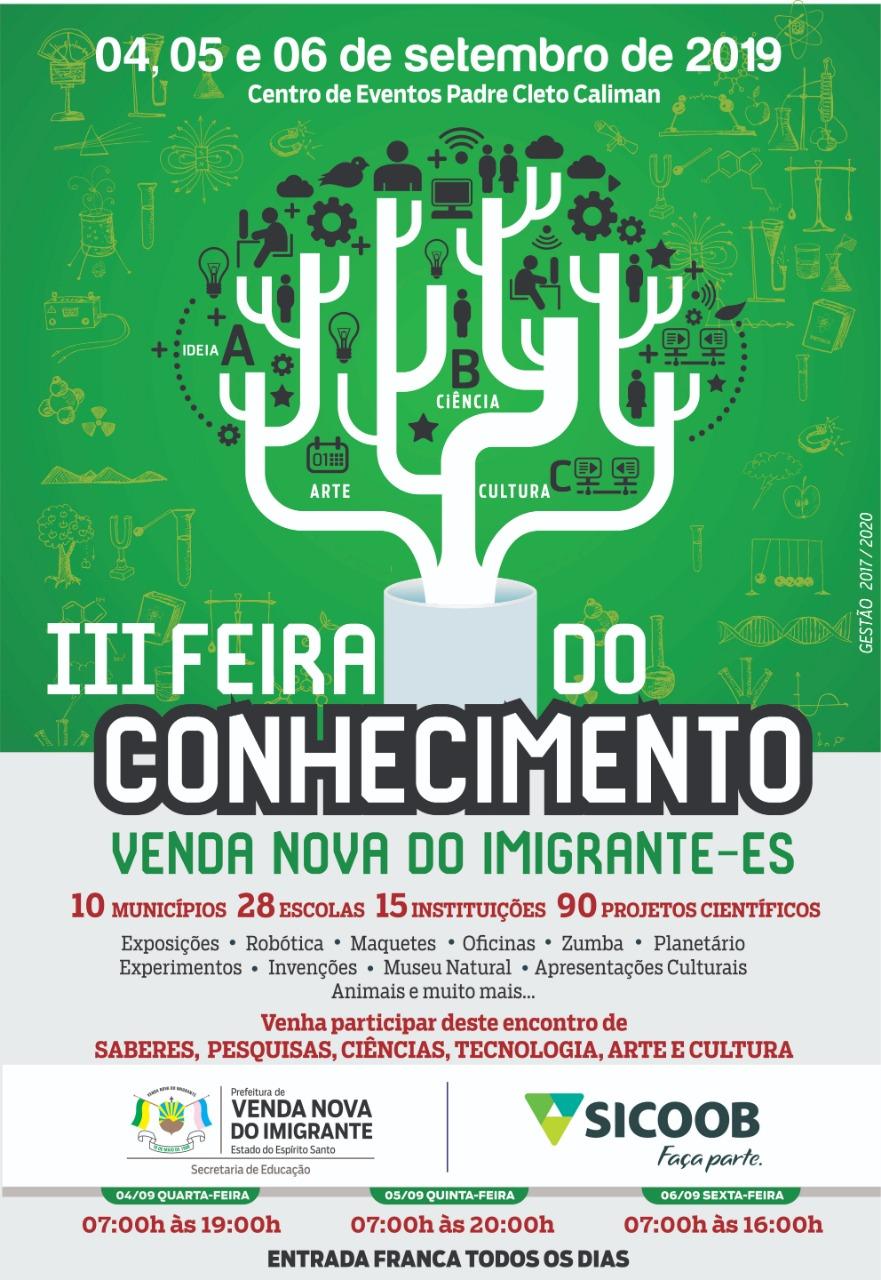 Você gosta de visitar várias áreas da ciência reunidas em um mesmo lugar? Essa opção você vai encontrar no nosso Município. Venda Nova do Imigrante vai realizar pela terceira vez o evento mais esperado do ano pelos estudantes e comunidade: a Feira do Conhecimento. São três dias para aproveitar no Centro de Eventos Padre Cleto Caliman, de quatro a seis de setembro.