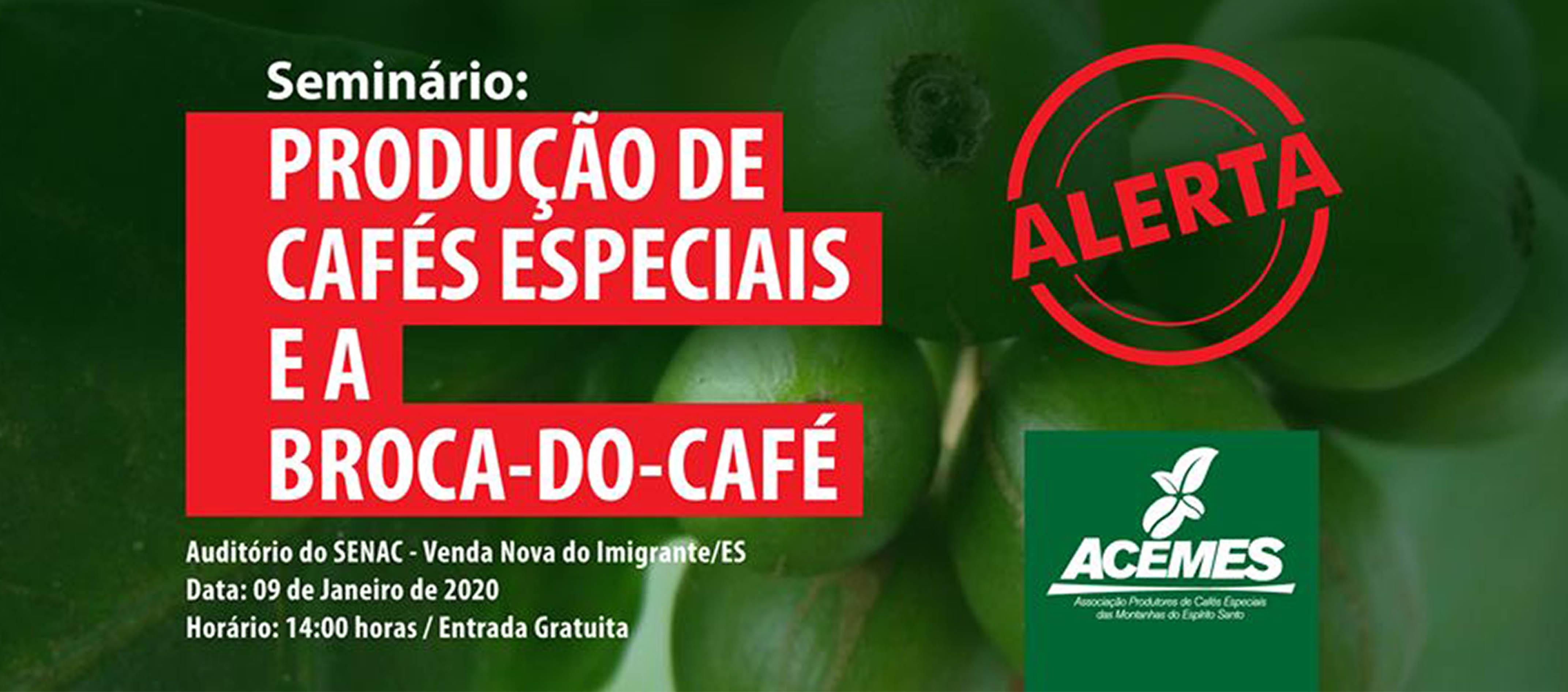 Para orientar e alertar os produtores da região sobre a broca-do-café a Prefeitura de Venda Nova do Imigrante, a Associação de Produtores de Cafés Especiais das Montanhas do ES (ACEMES) e o Instituto Capixaba de Pesquisa, Assistência Técnica e Extensão Rural (Incaper) promovem em parceria um seminário sobre o assunto.
