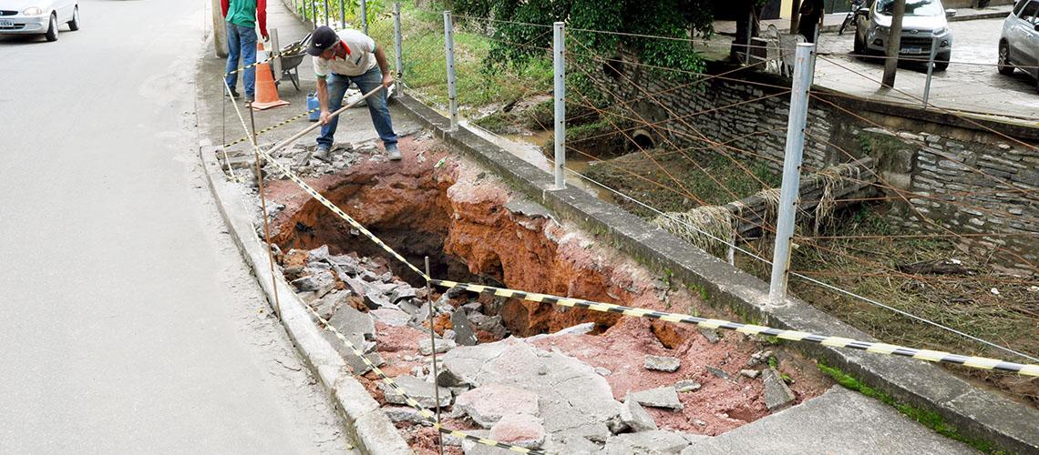 Alguns reparos imediatos já foram iniciados na tarde de hoje e por medida de segurança mais um trecho foi isolado. A orientação é que pedestres e ciclistas redobrem a atenção no local e nos demais trechos de calçada próximo ao rio, considerando o acumulado de chuvas dos últimos dias.