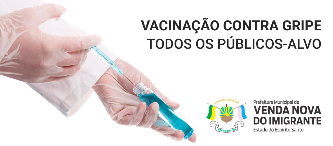 A Prefeitura de Venda Nova do Imigrante, por meio da Secretaria Municipal de Saúde, realiza nesta terça-feira (09) a vacinação contra gripe para quem pertence a algum público-alvo e ainda não foi imunizado. A campanha vai acontecer das 8h às 11h e não será necessário sair do veículo para ser vacinado.