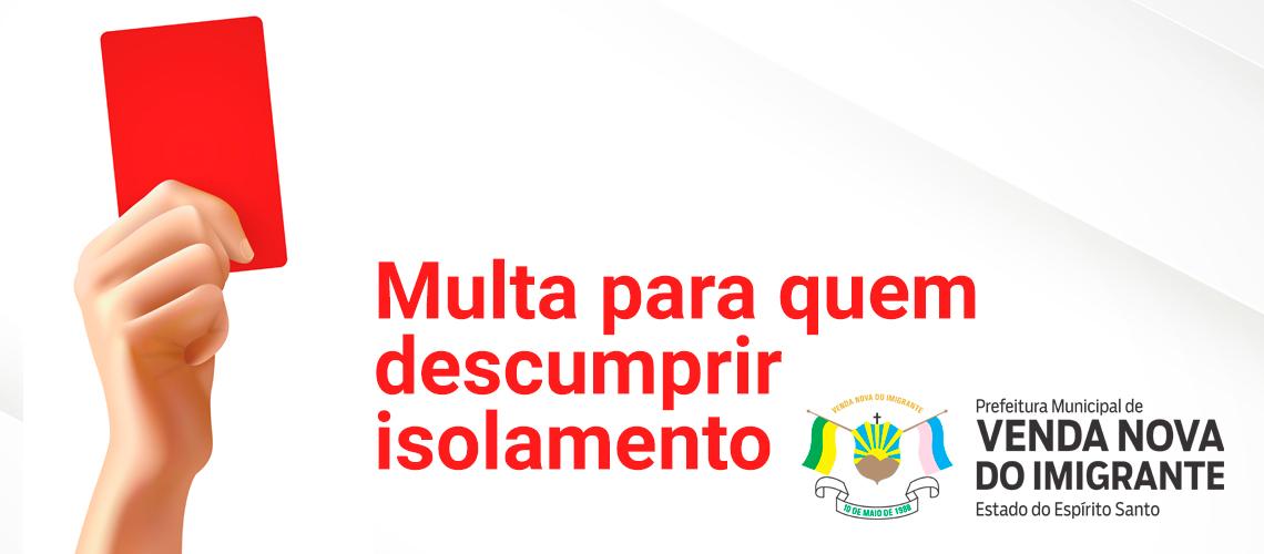 A situação epidemiológica de Venda Nova do Imigrante quanto ao coronavírus passou a exigir medidas de punição por parte da Administração Municipal. Além das campanhas de conscientização da comunidade, a Prefeitura vai multar quem tiver a Covid e não respeitar o isolamento. A medida também vale para casos suspeitos.