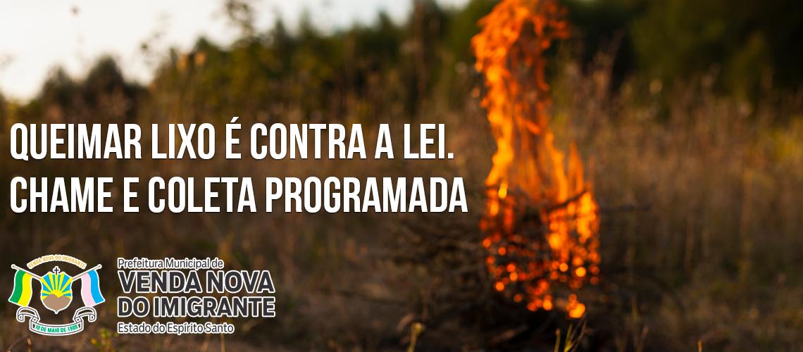 Por isso, a queima de resíduos é proibida em todo o território vendanovense. A proibição consta na lei municipal 1.000/2012. Quem descumprir essa regra pode ser penalizado. O correto é ligar para a Secretaria Municipal de Meio Ambiente e solicitar a Coleta Agendada.