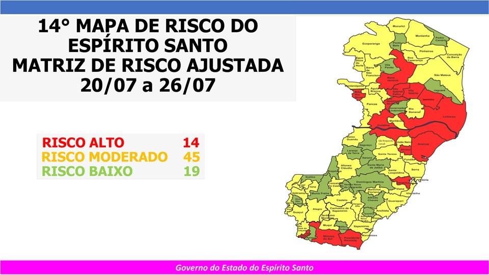 Confira abaixo o Mapa de Risco de todo o Estado.