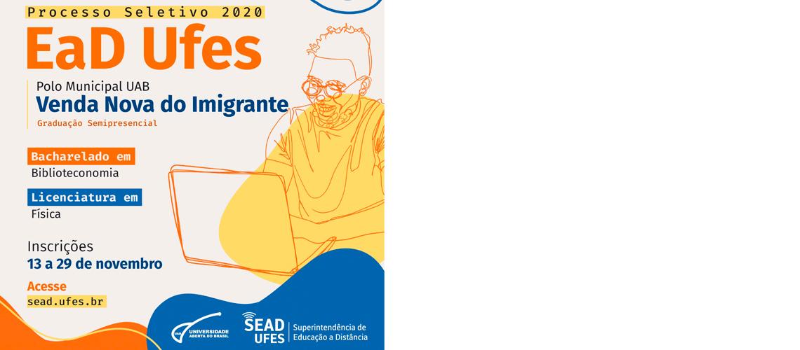 O Polo da Universidade Aberta do Brasil de Venda Nova do Imigrante abre nesta sexta-feira (13) as inscrições para a seleção de alunos para os cursos de bacharelado em biblioteconomia e licenciatura em física. Os dois cursos são oferecidos na modalidade de ensino a distância (EAD) pela Universidade Federal do Espírito Santo (Ufes).