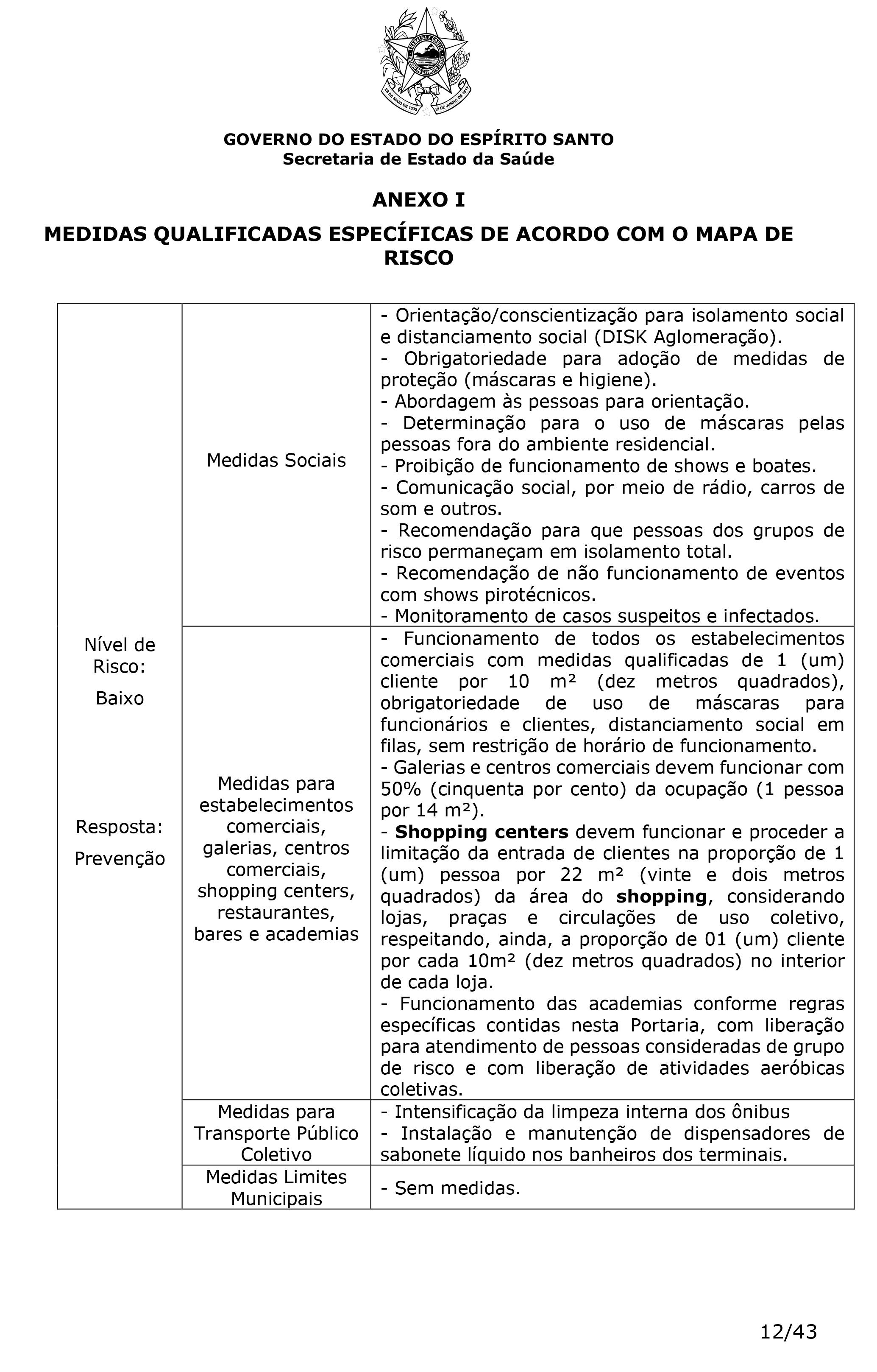 MEDIDAS QUALIFICADAS ESPECÍFICAS DE ACORDO COM O MAPA DE RISCO - PORTARIA Nº 226-R, DE 21 DE NOVEMBRO DE 2020.