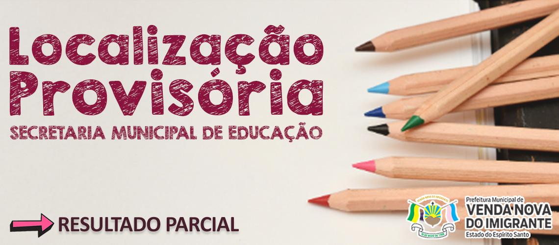 A Secretaria Municipal de Educação de Venda Nova do Imigrante (Semed) publicou nesta terça-feira (08) Resultado Parcial do Processo de Localização Provisória voltado para professores e pedagogos da rede municipal de ensino. A solicitação de recurso já pode ser feita no setor de protocolo da Prefeitura, das 12h às 18h.
