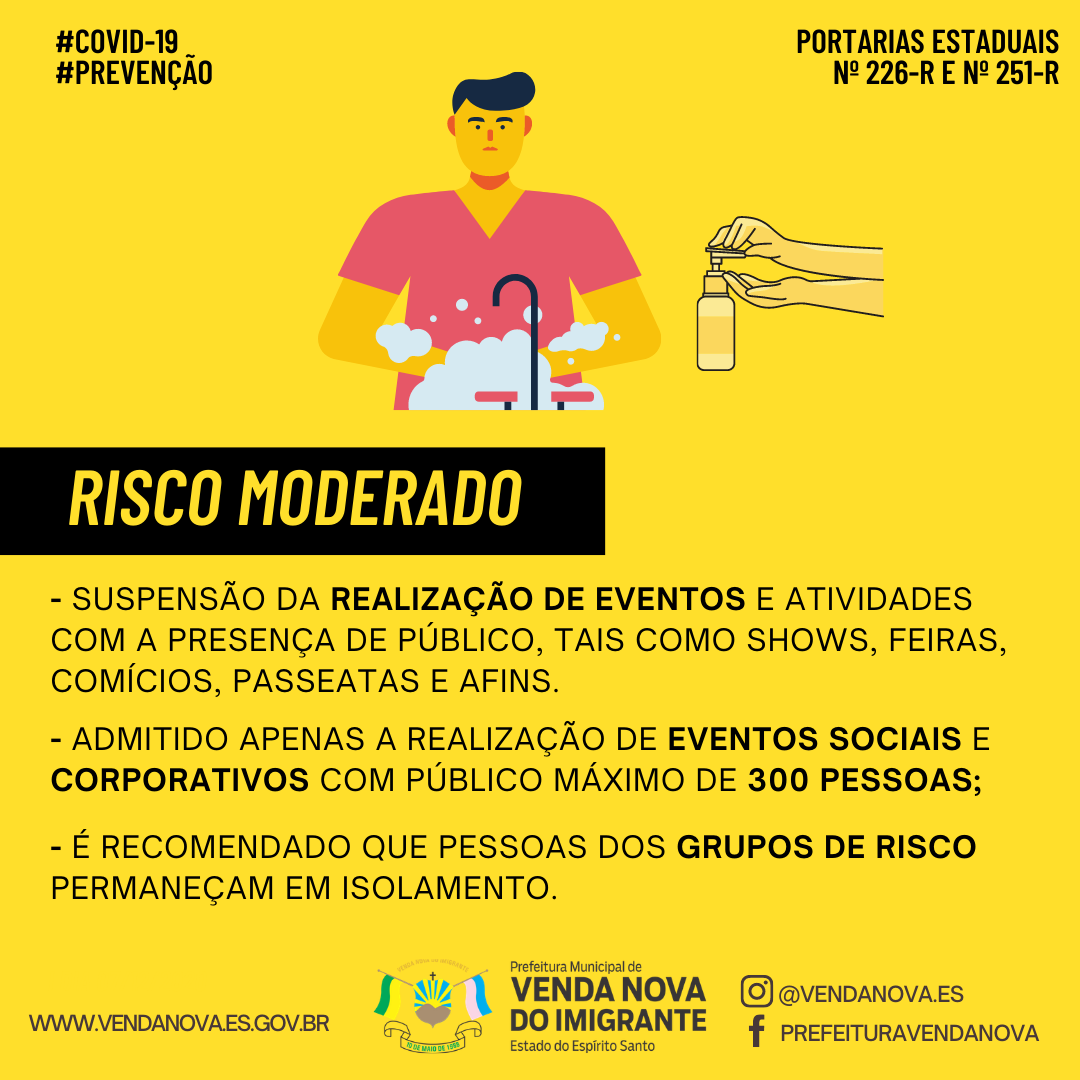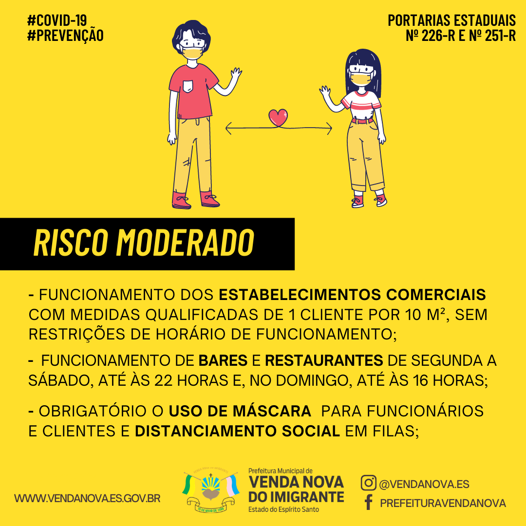 Venda Nova retorna para o Risco Moderado para COVID-19