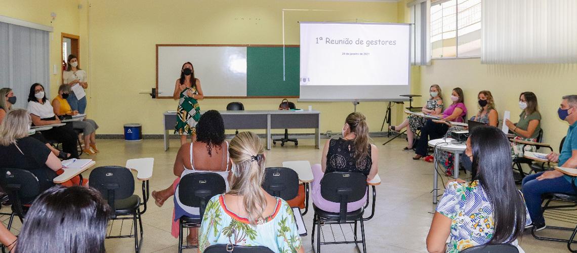A primeira reunião de 2021 com os gestores das escolas municipais para alinhar o início do ano letivo 2021