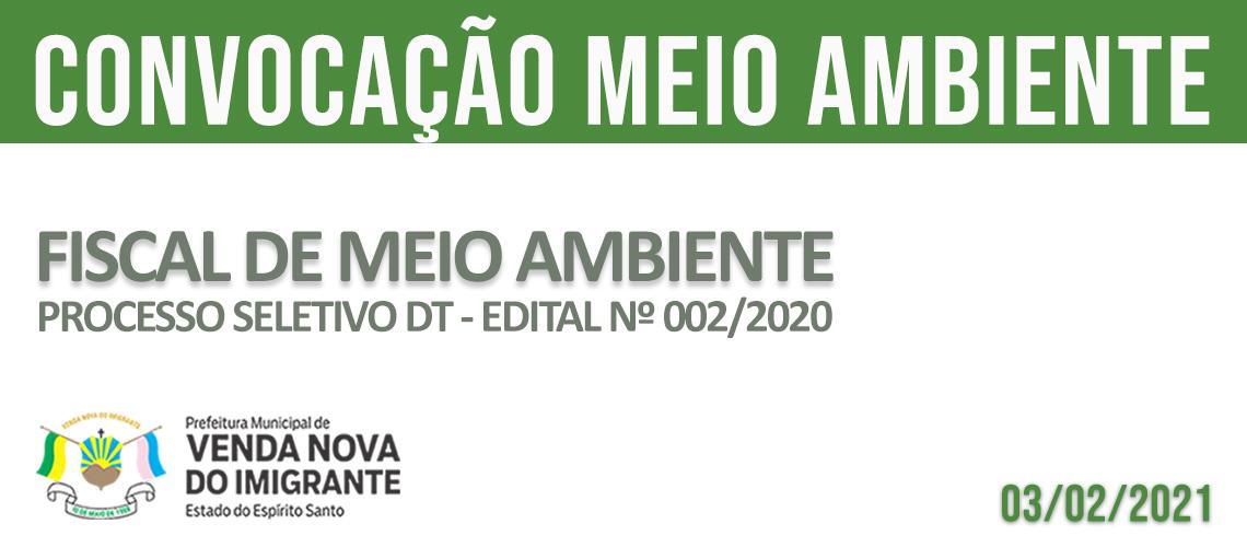 A Prefeitura de Venda Nova do Imigrante, por meio da Secretaria Municipal de Meio Ambiente, convoca nesta quarta-feira (03) aprovada no Processo Seletivo para DT, Edital N° 002/2020. Renata Caiado Cagnin está classificada para o cargo de fiscal de meio ambiente.