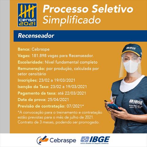 Maiores informações sobre os editais e o Censo 2021: https://censo2021.ibge.gov.br/
