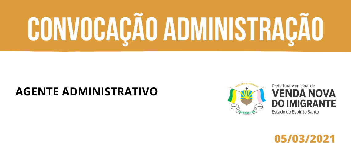 A Prefeitura de Venda Nova do Imigrante, por meio da Secretaria Municipal de Administração, convoca nesta sexta-feira (05) profissionais de excepcional interesse público, considerando o disposto no Edital N° 002/2020. As chamadas são para o cargo de agente administrativo.
