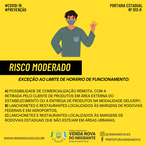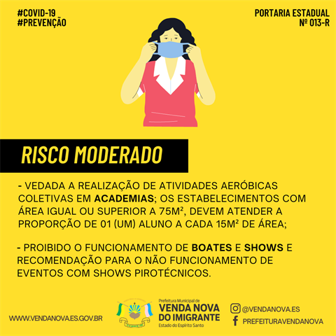 Veja abaixo as medidas qualificadas de enfrentamento à pandemia no Risco Moderado, de acordo com a Legislação Estadual (Portaria Nº 013-R, de 23 de Janeiro de 2021):
