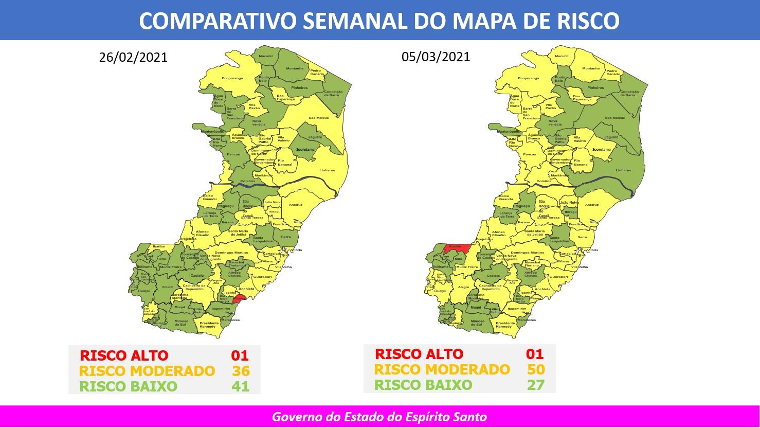 O Governo do Estado publicou na última sexta-feira (05), o 47º Mapa de Gestão de Risco para COVID-19. No novo Mapa, Venda Nova retorna para o Risco Moderado. A vigência, que vai até o dia 14 de março, começa hoje (08).