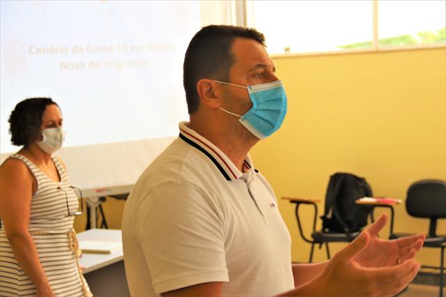 A Prefeitura de Venda Nova do Imigrante realizou nessa segunda-feira (15) reunião da Sala de Situação de Emergência em Saúde Pública, juntamente com entidades municipais, para tratar a situação atual da Covid-19 e quais serão as ações a serem adotadas no município. Estavam presentes no encontro: secretários municipais, representantes de entidades religiosas, redes de ensino, sindicato, entidades voluntárias, Câmara Municipal, Hospital Padre Máximo, Defesa Civil, Corpo de Bombeiros e Polícia Militar.