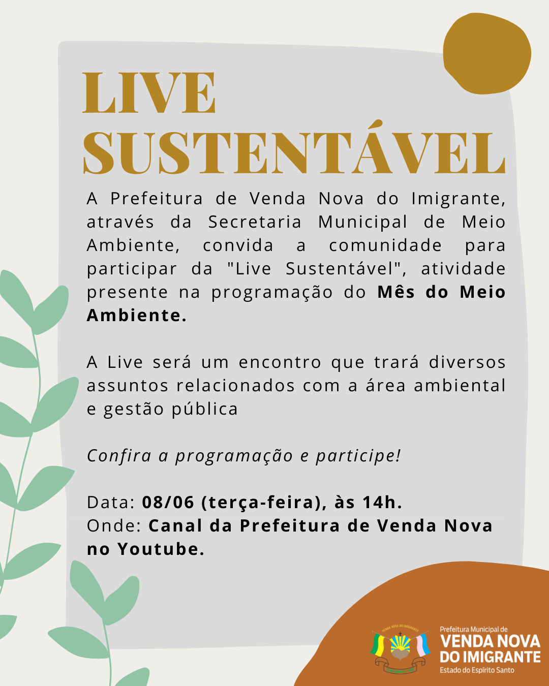 A Prefeitura Municipal de Venda Nova do Imigrante através da Secretaria Municipal de Meio Ambiente preparou uma programação especial para a Mês do Meio Ambiente. As atividades irão do dia 01 ao dia 11 de Junho de 2021.