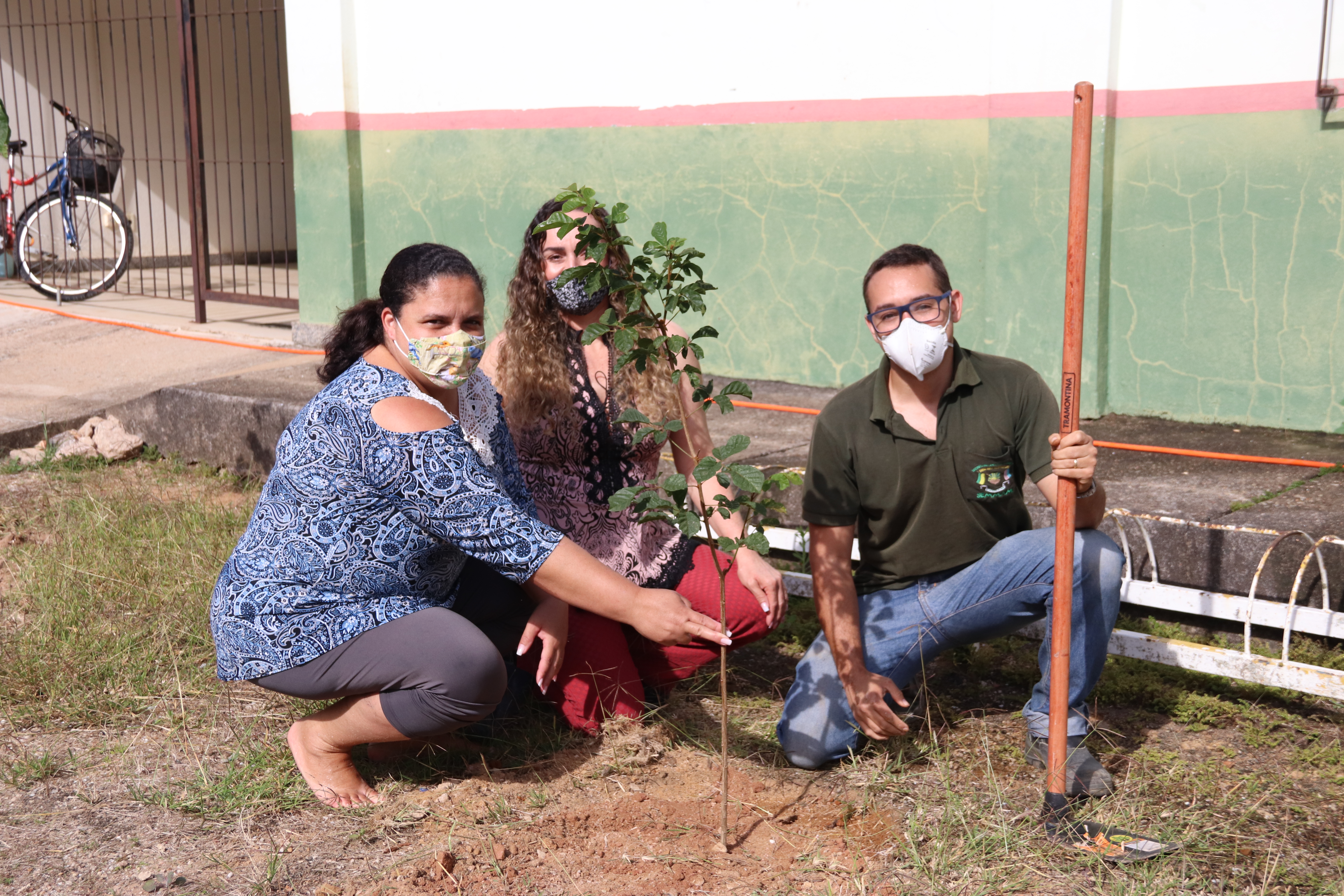 Na manhã desta terça-feira (01), dando início às atividades do Mês do Meio Ambiente, em parceria com a comunidade e com as Secretarias Municipais, houve o plantio de mudas e melhoria no paisagismo na Biblioteca Municipal e no Projeto Conviver. As crianças da EMEI Vovó Helena Sossai que estão estudando no espaço do Projeto Conviver enquanto a escola está em reformas, e servidoras da Biblioteca Municipal participaram do ato. Foram plantadas mudas de ipê rosa e amarelo e pata vaca branca. As mudas são doações de compensação ambiental.