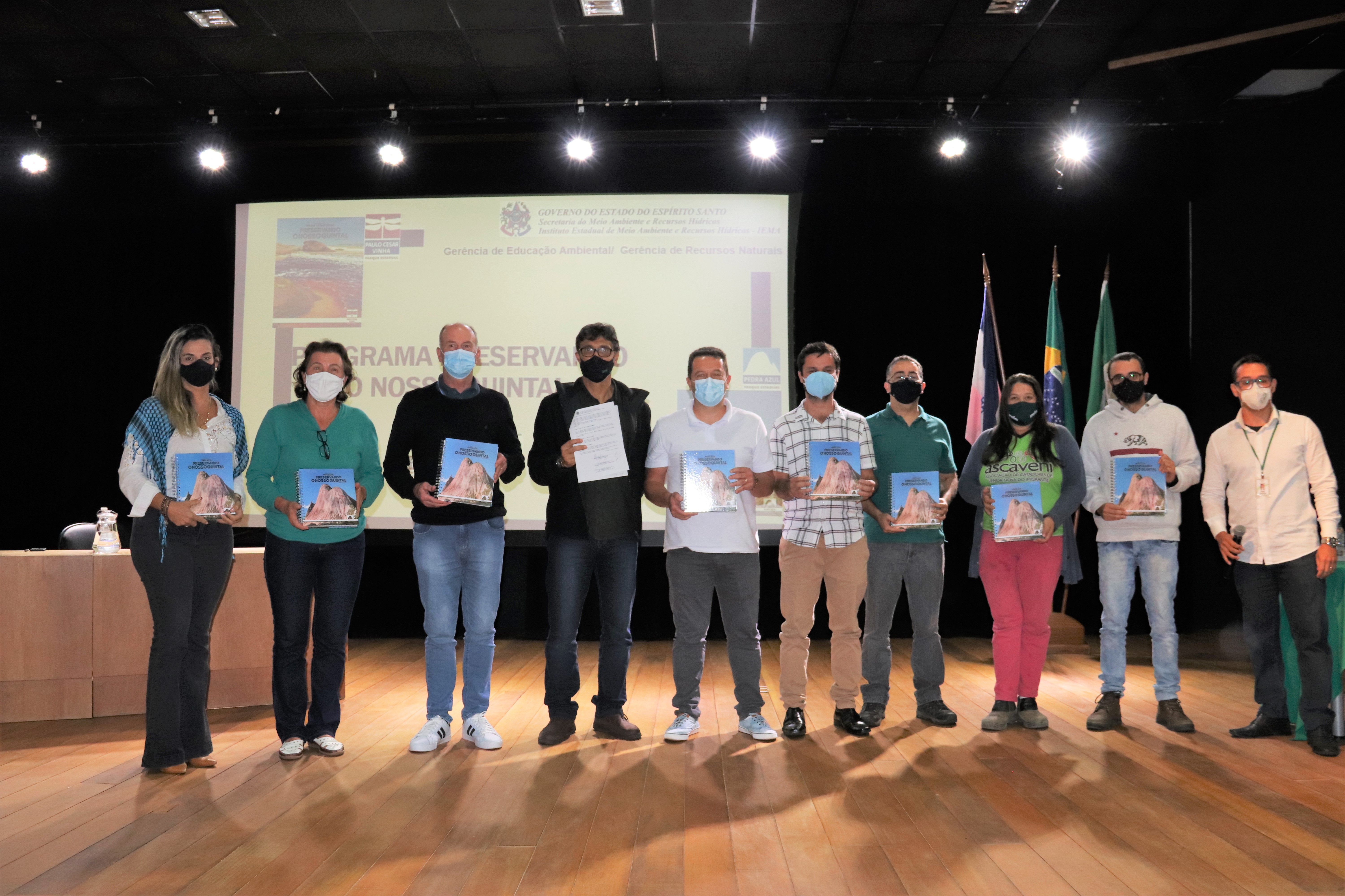 Na cerimônia ainda foram entregues exemplares do Livro “Preservando Nosso Quintal”, também elaborado pelo Iema. “O livro trata dos aspectos culturais que estão em torno do nosso parque. Ele tem o papel de educar, tanto em material fotográfico, quanto em mídia digital, que pode ser profundamente explorado por vocês. O livro ainda traz um aspecto de aproximação da comunidade com o parque. Pra gente é fundamental que quem está em torno do parque entenda aquele ativo como ativo dele.” Destaca o presidente do Iema, Alaimar Fuiza.