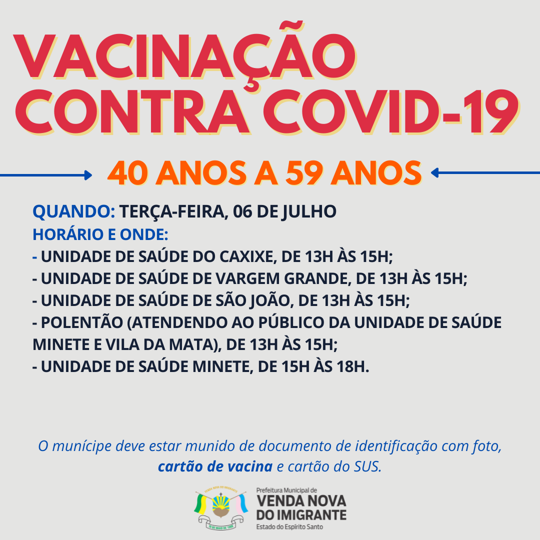 VACINAÇÃO CONTRA COVID-19 – 40 ANOS A 59 ANOS