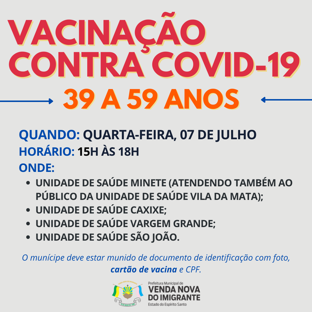 VACINAÇÃO CONTRA COVID-19 – 39 ANOS A 59 ANOS