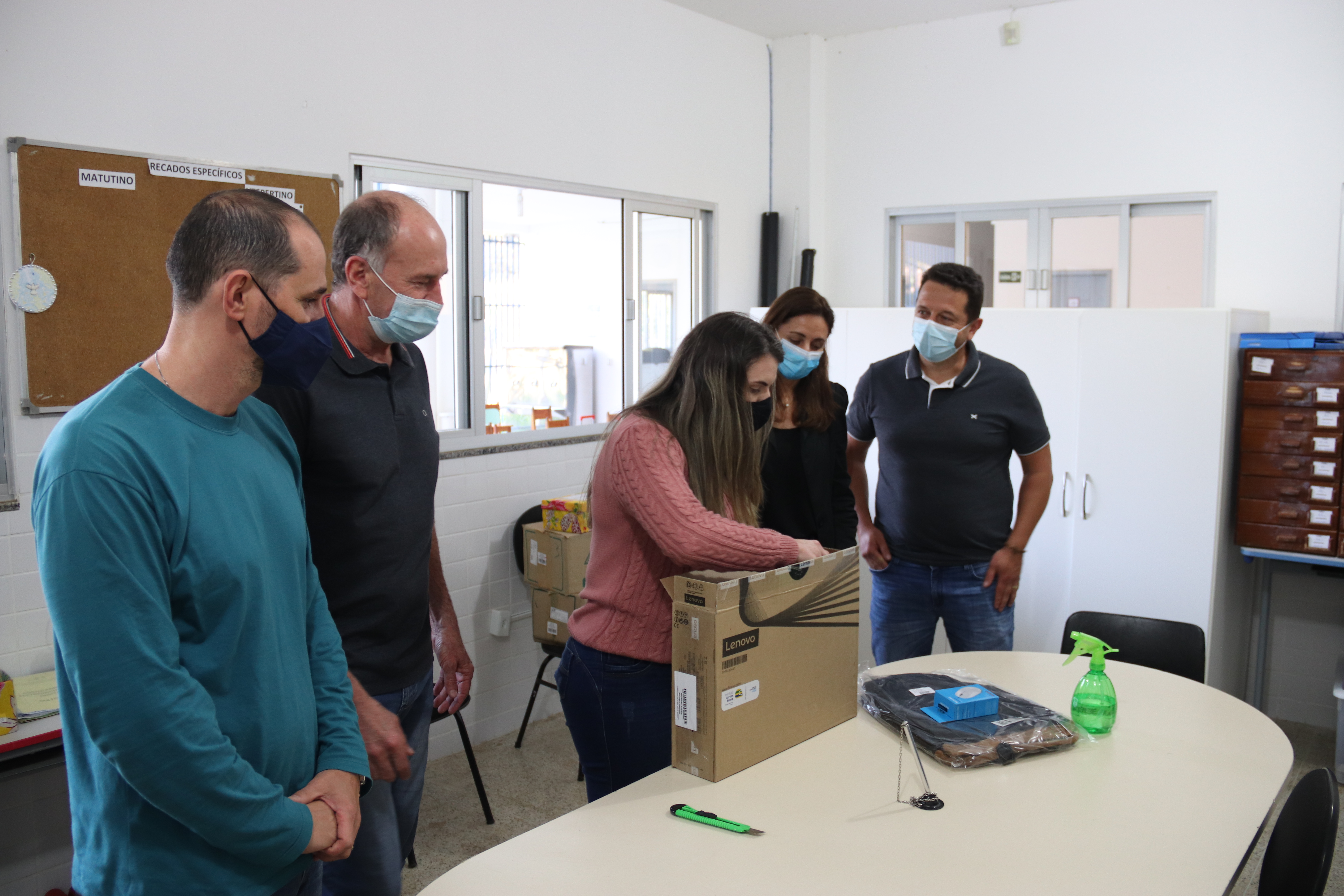 As duas entregas simbólicas foram realizadas nas escolas EMEI Antenor Honorio Pizzol e EMEI Antônio Roberto Feitosa. Na Antenor Honório Pizzol o notebook foi entregue para a funcionária efetiva com mais tempo de atuação, Jéssia Viana da Silva. A professora está na rede municipal desde 1997.