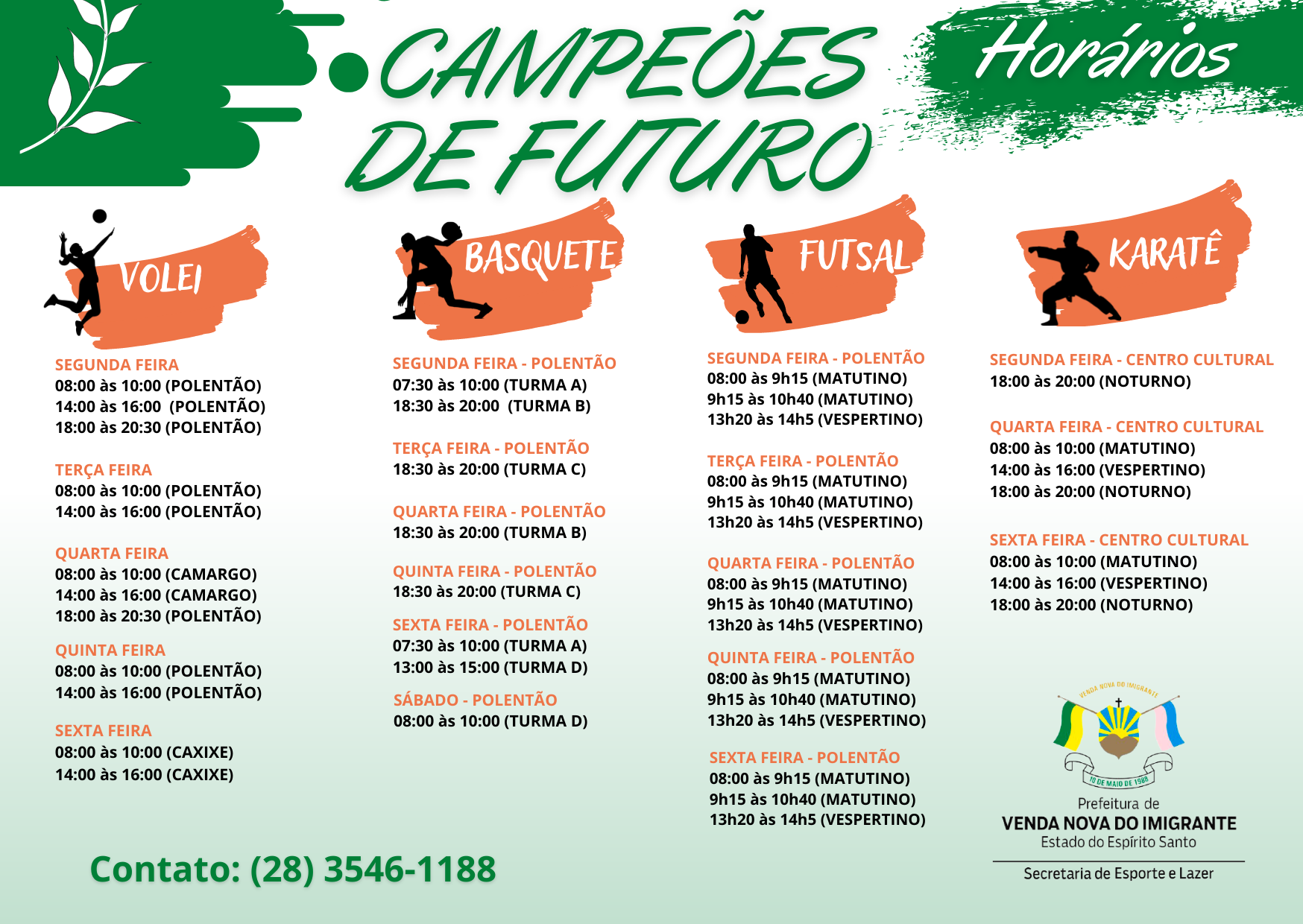 A Prefeitura Municipal de Venda Nova do Imigrante, através da Secretaria Municipal de Esporte e Lazer informa que o Projeto Campeões de Futuro retorna com suas atividades nesta segunda-feira (20).