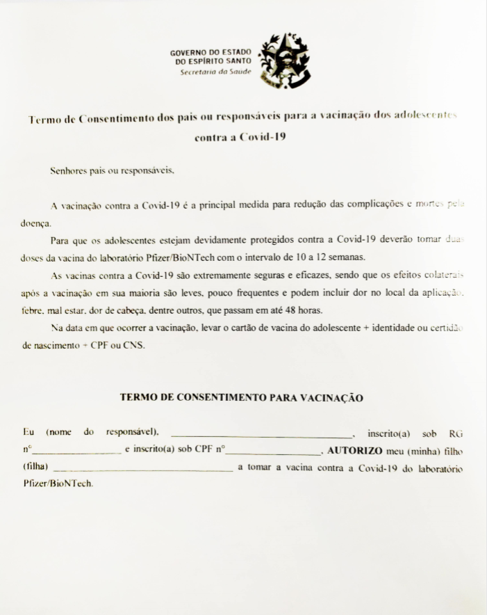Para a vacinação é necessário que o jovem porte o termo de consentimento assinado pelos pais ou responsáveis. ACESSE O TERMO AQUI.