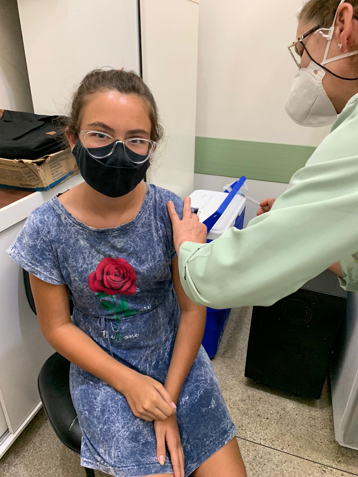 Além de Victorio Uliana Sossai, mais início da tarde, o pequeno Anthony Da Silva Serafin de 7 anos, residente do bairro Bananeiras também recebeu a primeira dose da vacina contra Covid. Ele estava acompanhado de seus pais Antônio Severino Serafin e Lúcia Helena Da Silva Serafin.