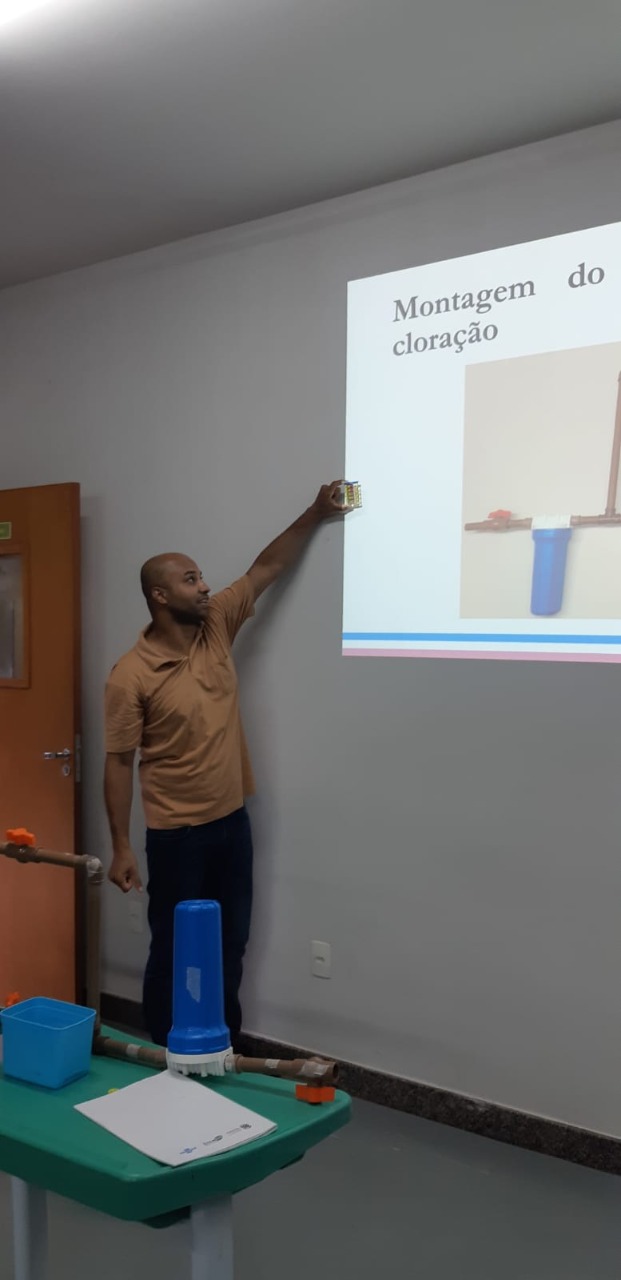 Na ocasião ainda, foi apresentado como instalar um dosador de cloro de baixo custo, utilizar as pastilhas de cloro e medir a quantidade de cloro da água, garantindo a potabilidade da água, auxiliando na produção segura de alimentos.