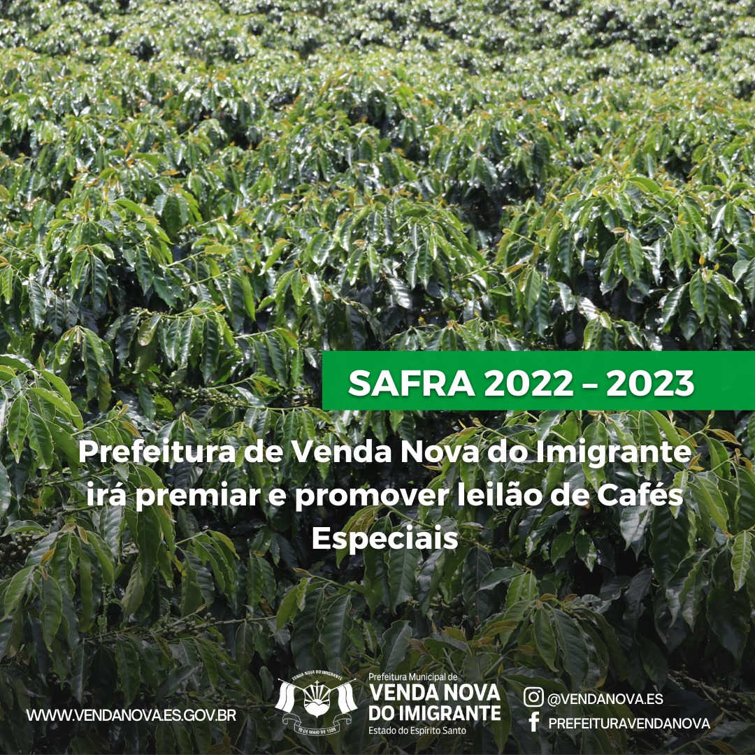 Atenção e premiação para os produtores de cafés especiais de Venda Nova do Imigrante! A Prefeitura de Venda Nova, através da Secretaria Municipal de Agricultura, irá realizar a 3º Premiação e Leilão de Cafés Tardios de Qualidade do Município. As inscrições começam no dia 19 de setembro.