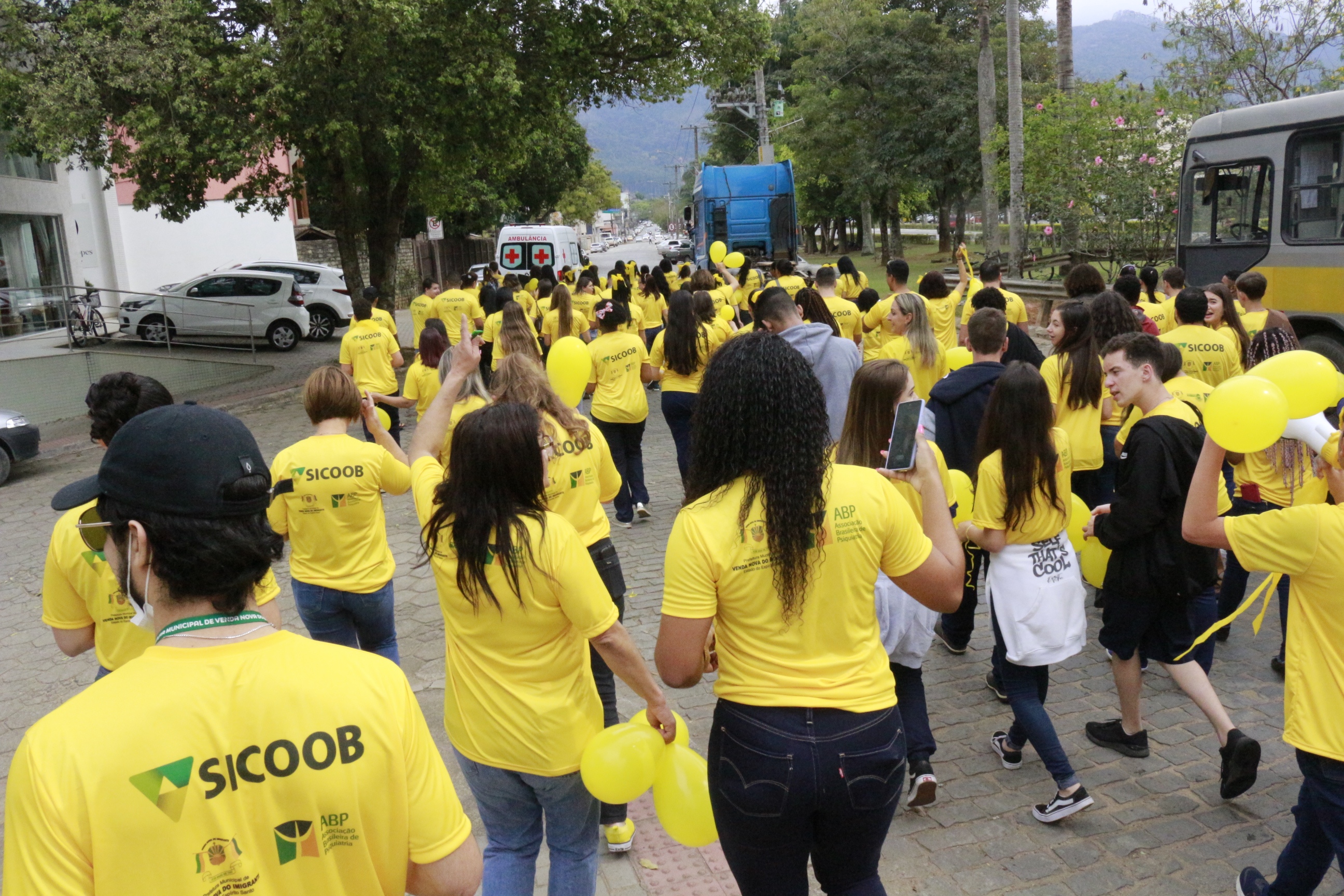 Mensagens de valorização à vida marcaram a caminhada, que contou com a participação dos profissionais da saúde e das escolas da rede municipal e apoiadores da causa. Com camisetas, balões e faixa, de cor amarela, os participantes chamaram a atenção da comunidade com frases de apoio, acolhimento e incentivo.