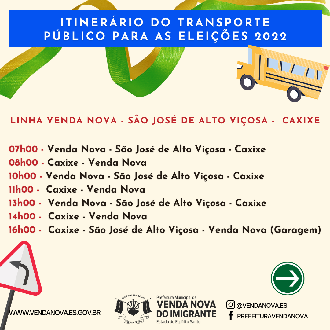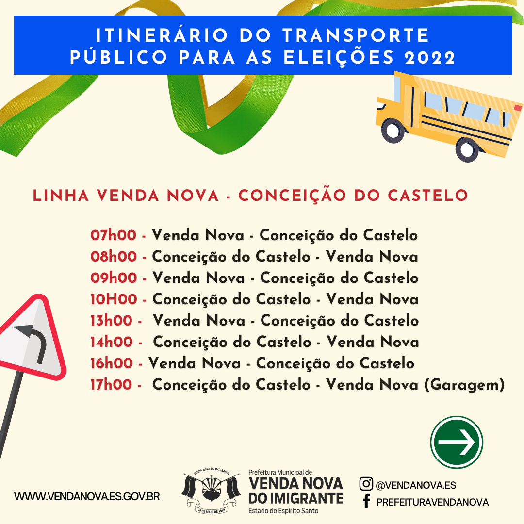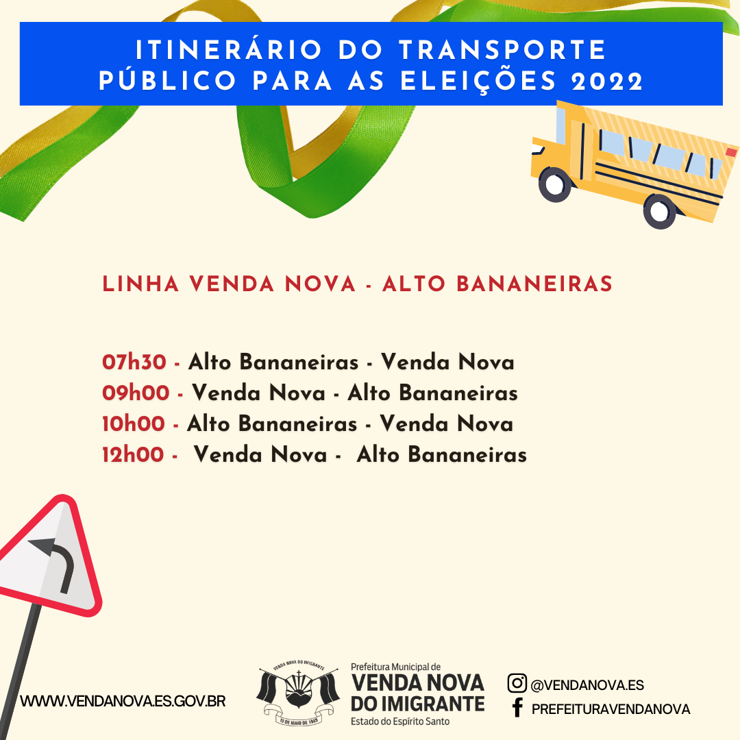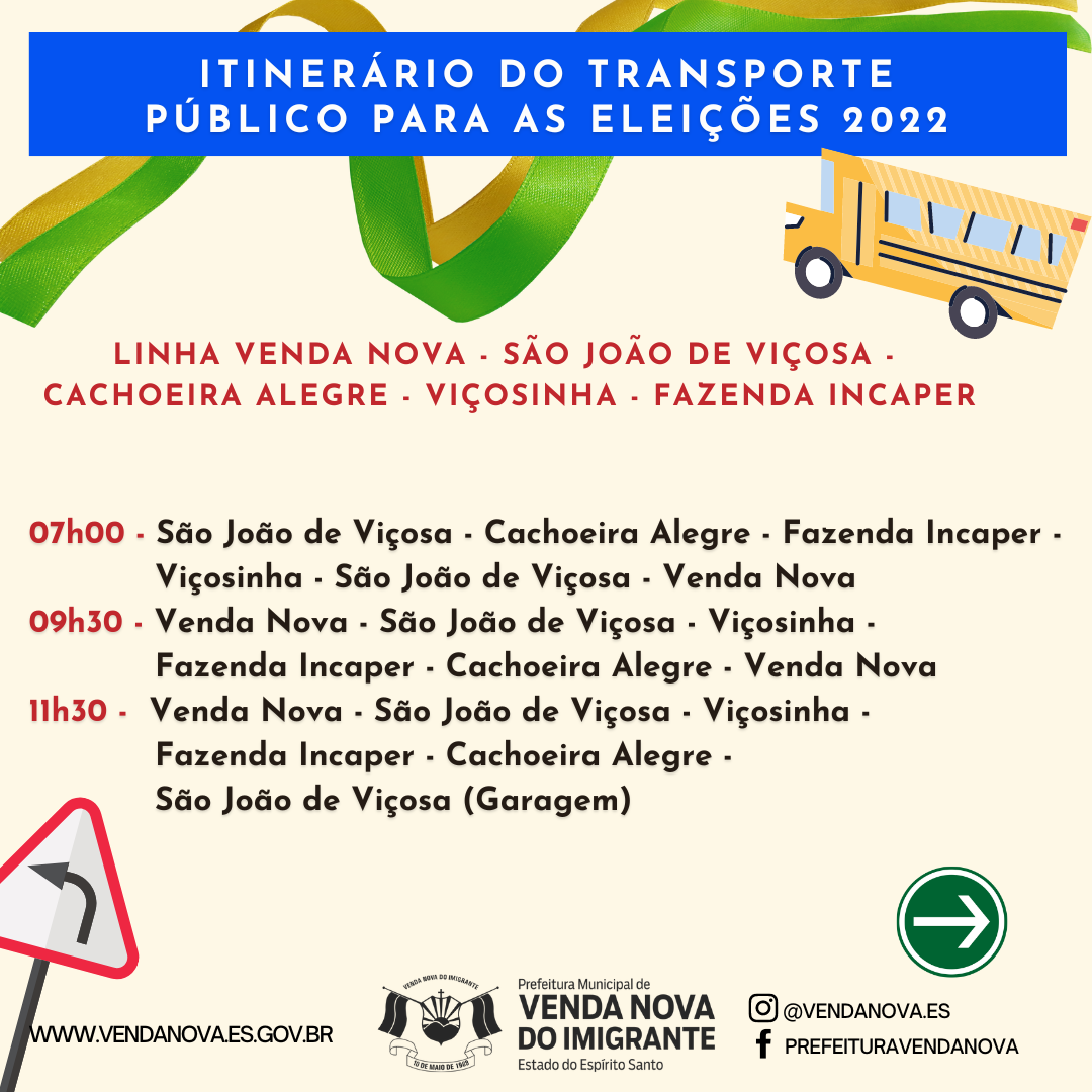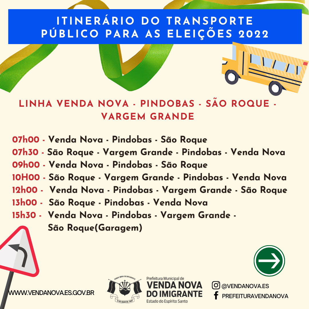 Os veículos irão percorrer os locais e zonas eleitorais de Venda Nova, no horários determinados pelo itinerário que pode ser visualizado abaixo. Para atender a população, serão colocadas em circulação durante as eleições deste domingo, 07 linhas que irão abranger diversas localidades do Município, confira: