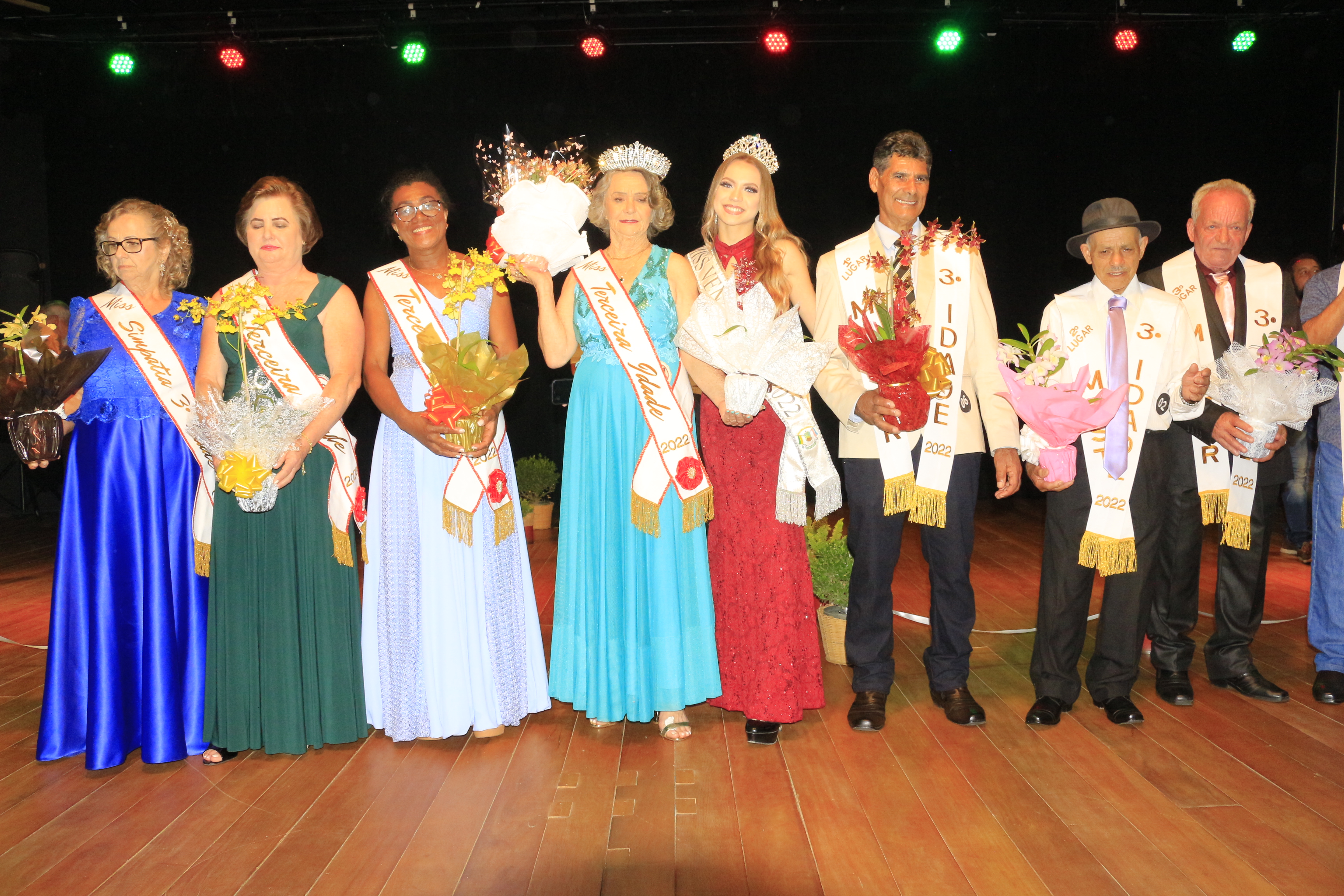 A noite marcou a vigésima terceira edição do concurso de miss, com nove mulheres inscritas, e a quarta edição do concurso de mister, com dez candidatos. No total foram eleitos oito idosos. Confira: