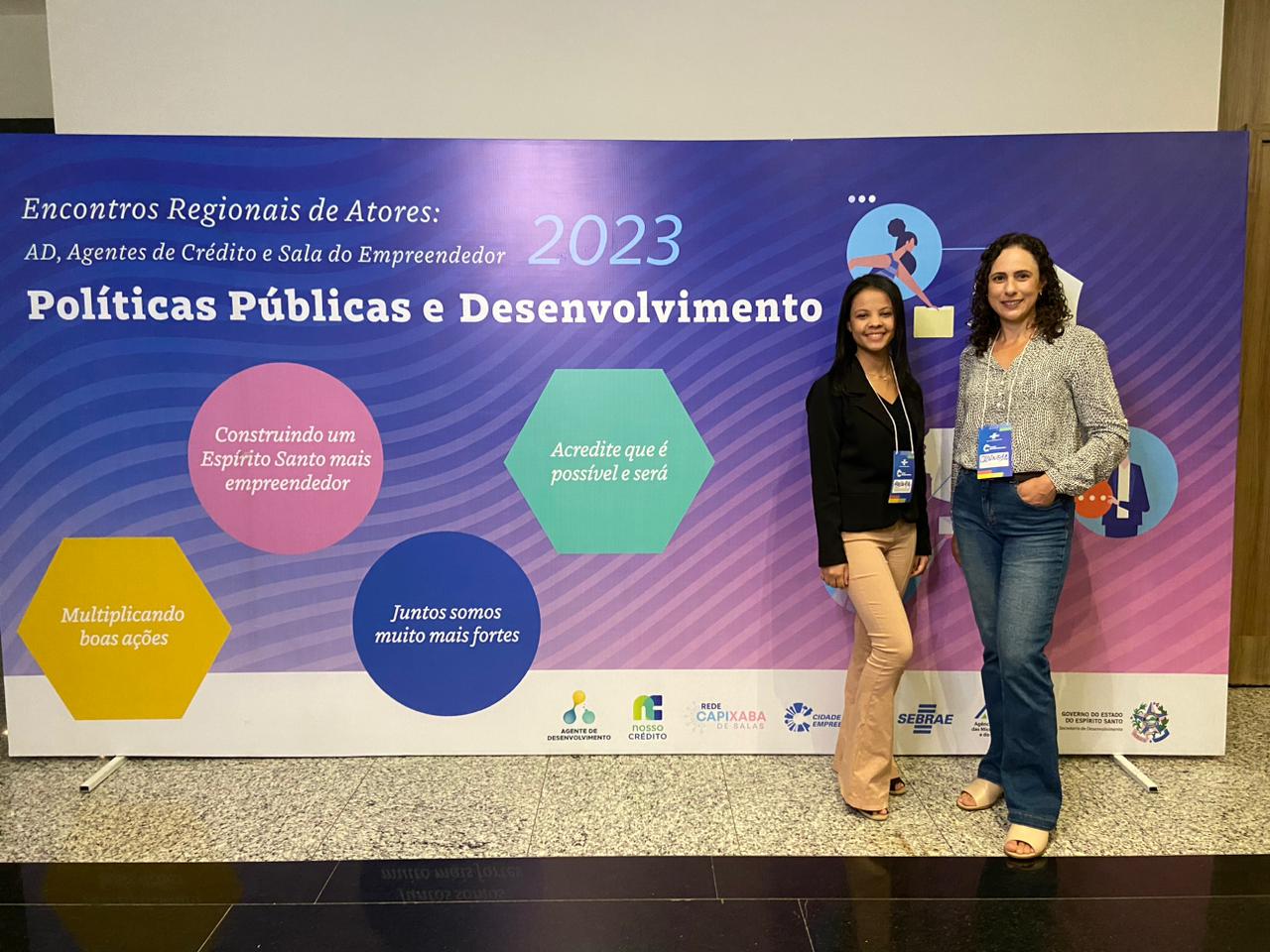 Nesta segunda (19) e terça-feira (20), secretária municipal de Finanças, Cidineia Falchetto e a auxiliar administrativo e agente de desenvolvimento, Maiara Gonçalves, estão participando dos Encontros Regionais de Atores 2023, que reúnem representantes municipais dos agentes de desenvolvimento e da sala do empreendedor. No encontro estão sendo abordados pontos para identificar as políticas públicas municipais que serão implantadas para melhorar o ambiente de negócio no Município.