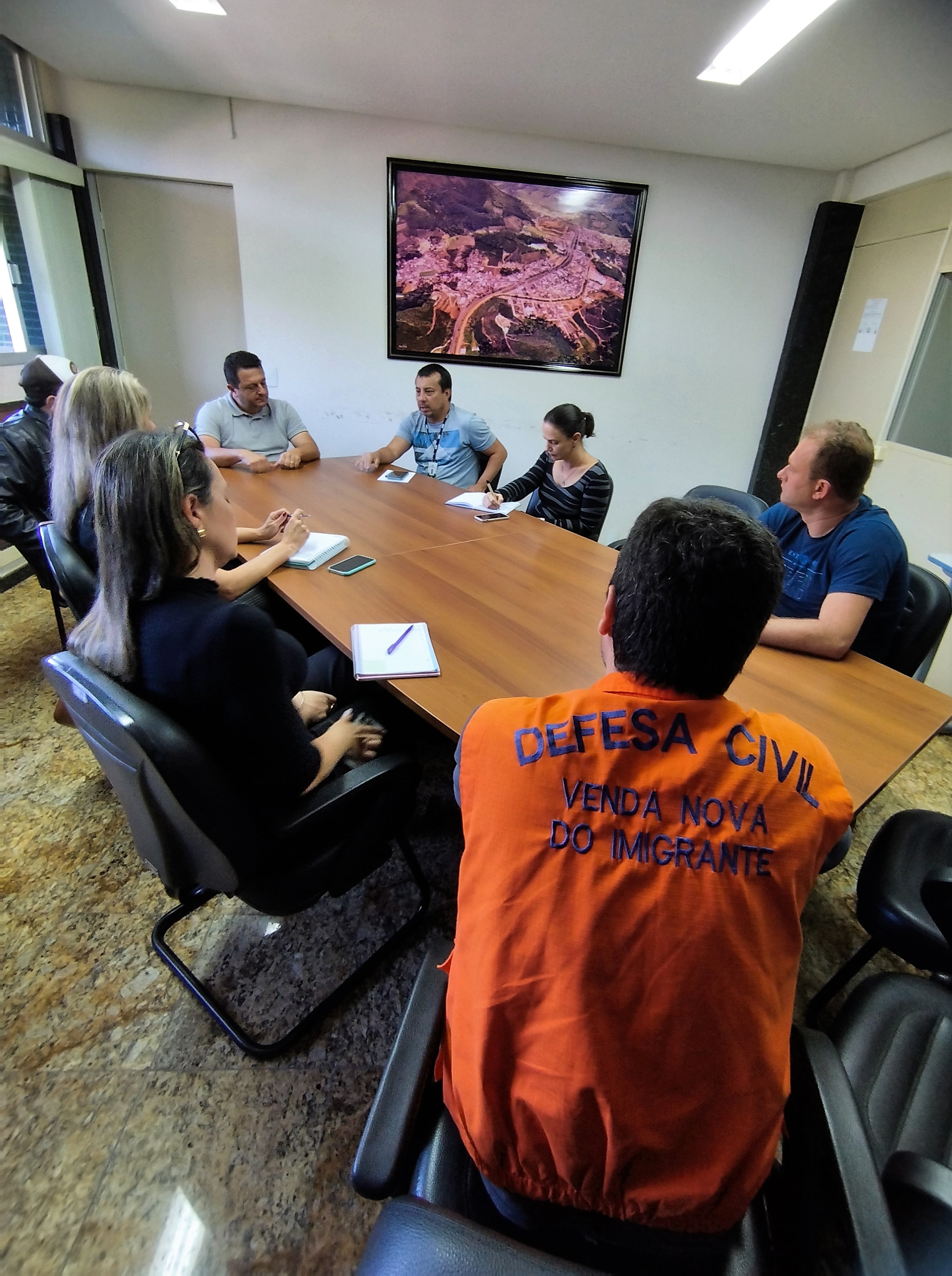 Na tarde desta quarta-feira, a Prefeitura de Venda Nova do Imigrante se reuniu com autoridade do IDAF para efetivação de ações preventivas de segurança no Município. Estavam presentes o prefeito municipal Paulinho Mineti, o Gerente do Escritório local do IDAF de Castelo, Tiago Nakano, o secretário de Agricultura Ivanildo Almeida, a secretária de Saúde, Camila Zandonadi, o secretário de Obras e Infraestrutura Urbana, Wellington Bleidorn, a secretária Municipal de Meio Ambiente Sabrina Zandonade, a procuradora municipal Juliana Foletto e o coordenador da Defesa Civil Municipal, Gleidson Eustáquio.