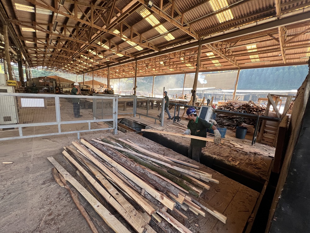 A serraria oferece uma ampla gama de produtos, que variam desde materiais acabados, como decks, forros e paredes, até produtos desdobrados, como aqueles destinados às já citadas embalagens de granito e paletes. Com uma equipe de cerca de 38 profissionais, o setor de produção da serraria opera eficientemente para atender às demandas do mercado.