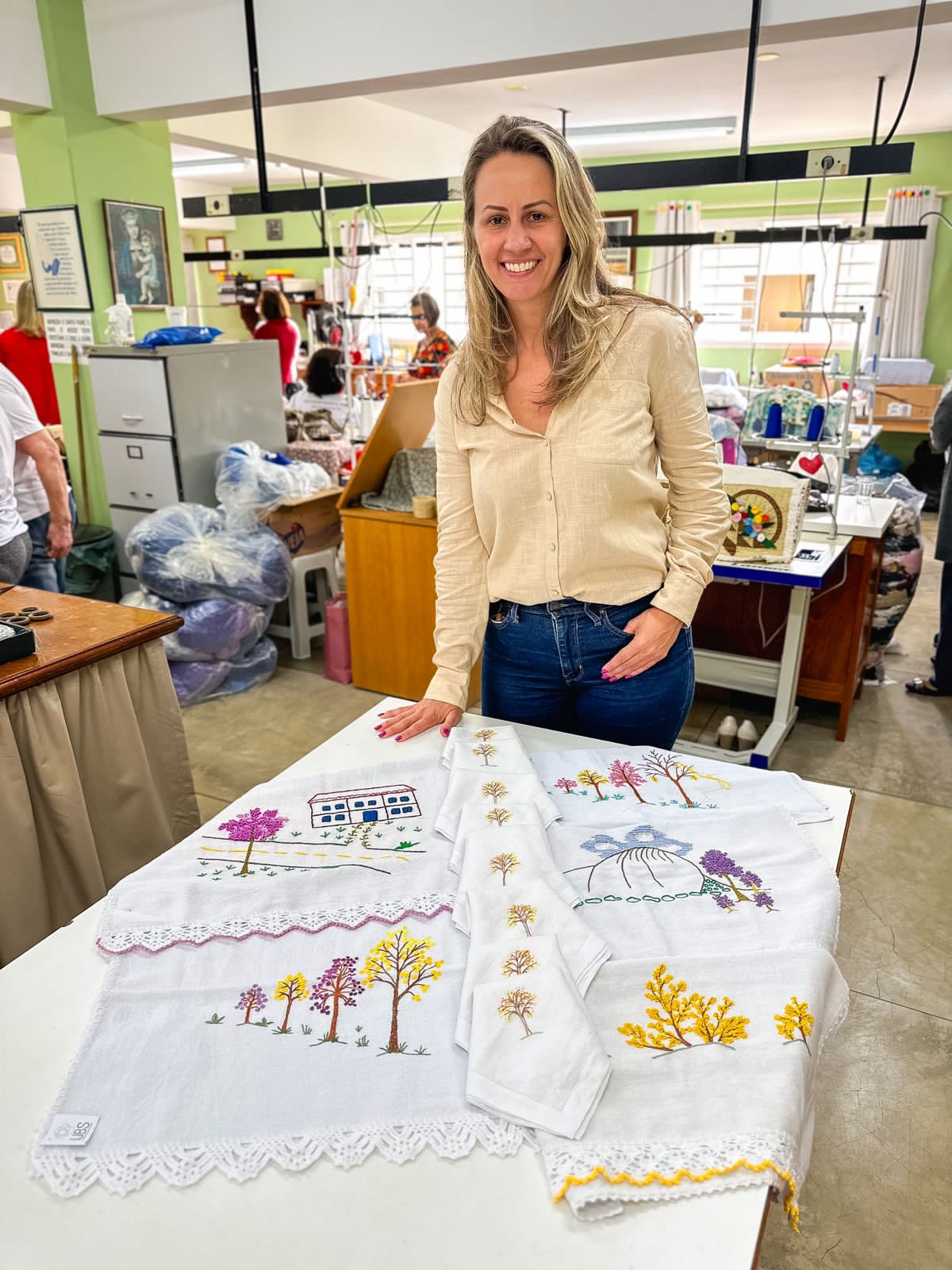 E a árvore também inspira o trabalho de 130 mulheres dedicadas à filantropia. A Associação das Voluntárias Pró-Hospital Padre Máximo criou a “Coleção Ipês”, de peças de artesanato bordadas à mão. A ideia foi proposta pela Prefeitura de Venda Nova junto à diretoria da Associação, que abraçou a causa e desenvolveu panos de pratos e guardanapos com a temática dos ipês.