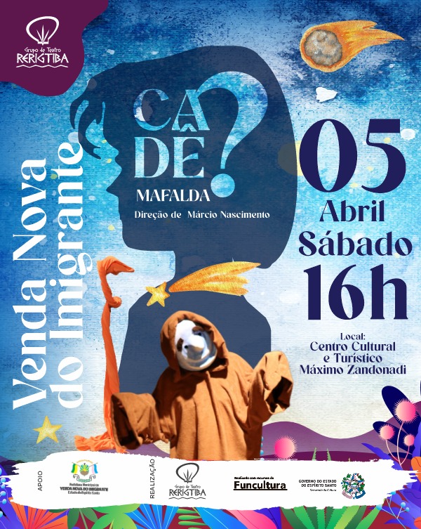 Venda Nova do Imigrante será palco do espetáculo “Cadê Mafalda?”, uma peça voltada ao público infantil que traz reflexões sobre aceitação, diversidade e o protagonismo das crianças. A apresentação será no dia 5 de abril (sábado), às 16h, no Centro Cultural e Turístico Máximo Zandonadi, com entrada gratuita e classificação livre.