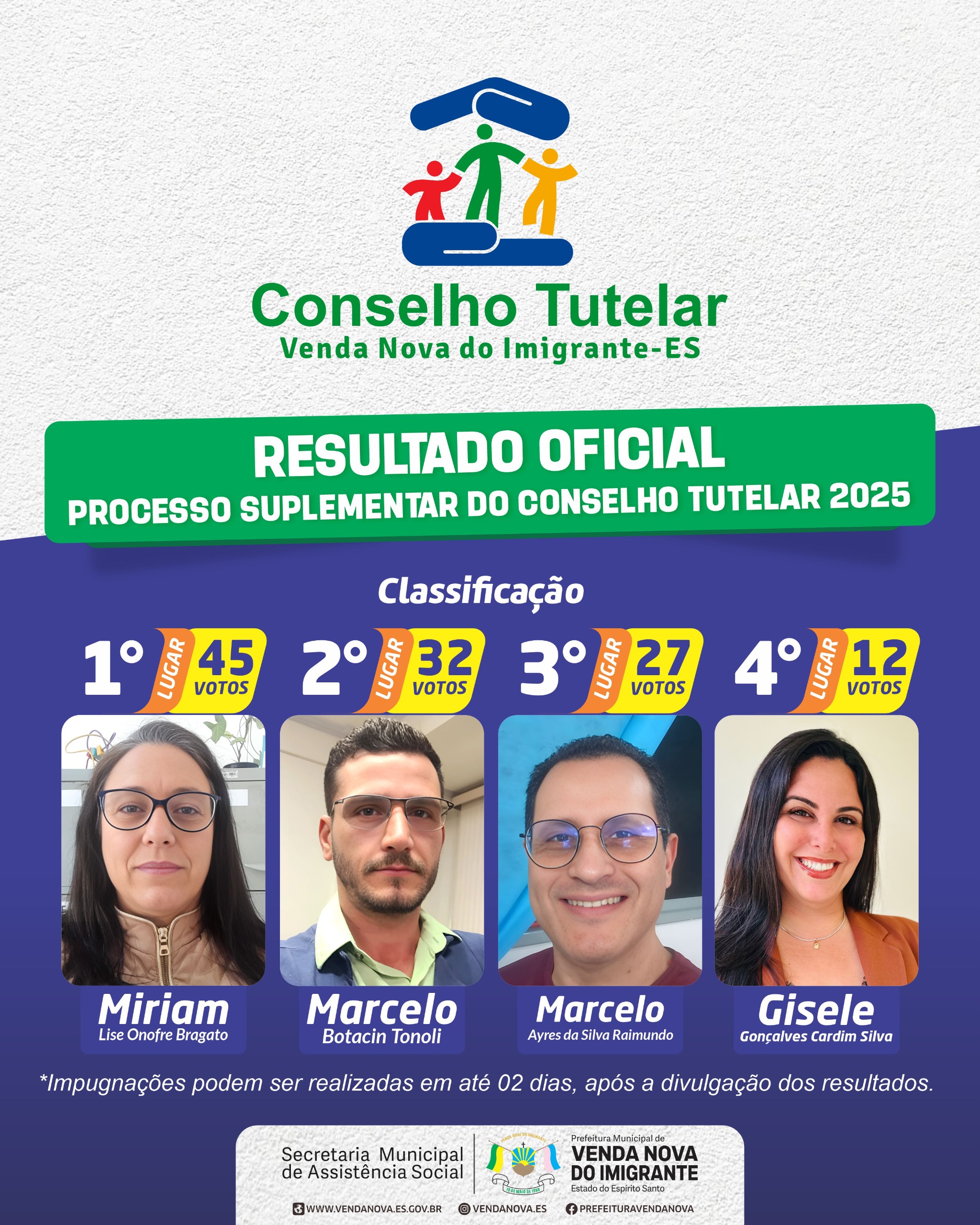 RESULTADO DA ELEIÇÃO DOS CANDIDATOS SUPLENTES DO CONSELHO TUTELAR - Atualizado em 04/08/2025
